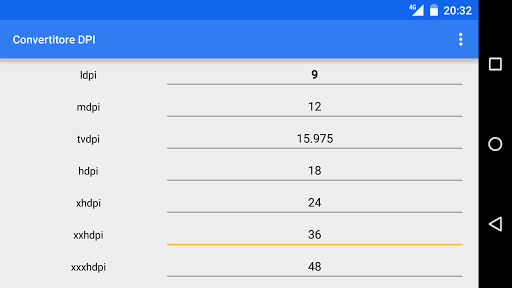 • Instantly convert a pixel dimension to all the densities supported by Android.